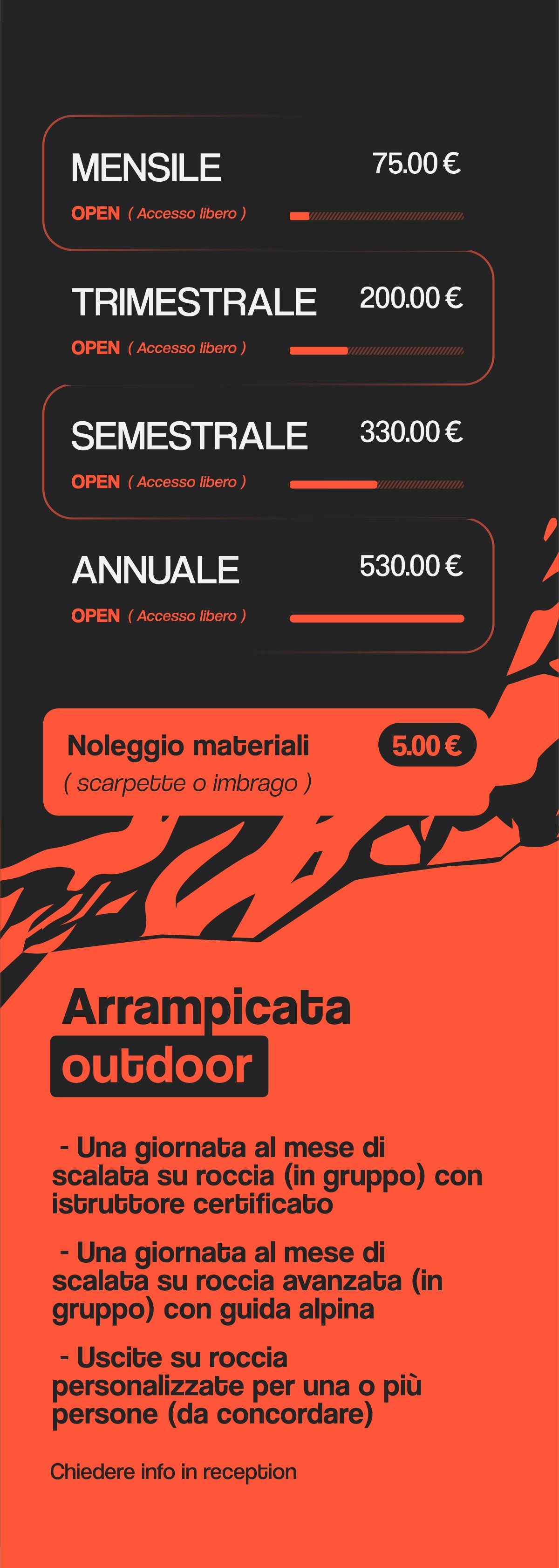 Moon-Board e Campus Board, Nuova Parete Scuola, Nuova Area Fitness con schede personalizzate, Nuove vie e blocchi, Corsi di Pilates e Yoga, …